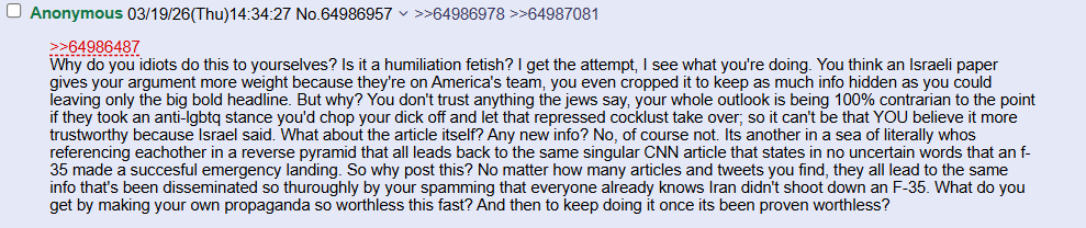 >no what ? You realize that people can scroll up and see exactly what I'm saying "no" to right? The fact is that Ukraine has failed to shoot down drones with its trainers, since it's literally pulling WW-1 shit, with people firing handguns out of open cockpits. There's literally a Russian drone video where they try and fail to shoot it down.