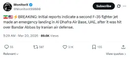 https://www.zerohedge.com/military/how-do-you-lose-f-35-us-military-cant-find-stealth-jet-after-mishap https://www.zerohedge.com/military/new-footage-reveals-wreckage-f-35-jet-amidst-speculation-potential-cyberattack Southfront did an article on just how lame the F-35 is: