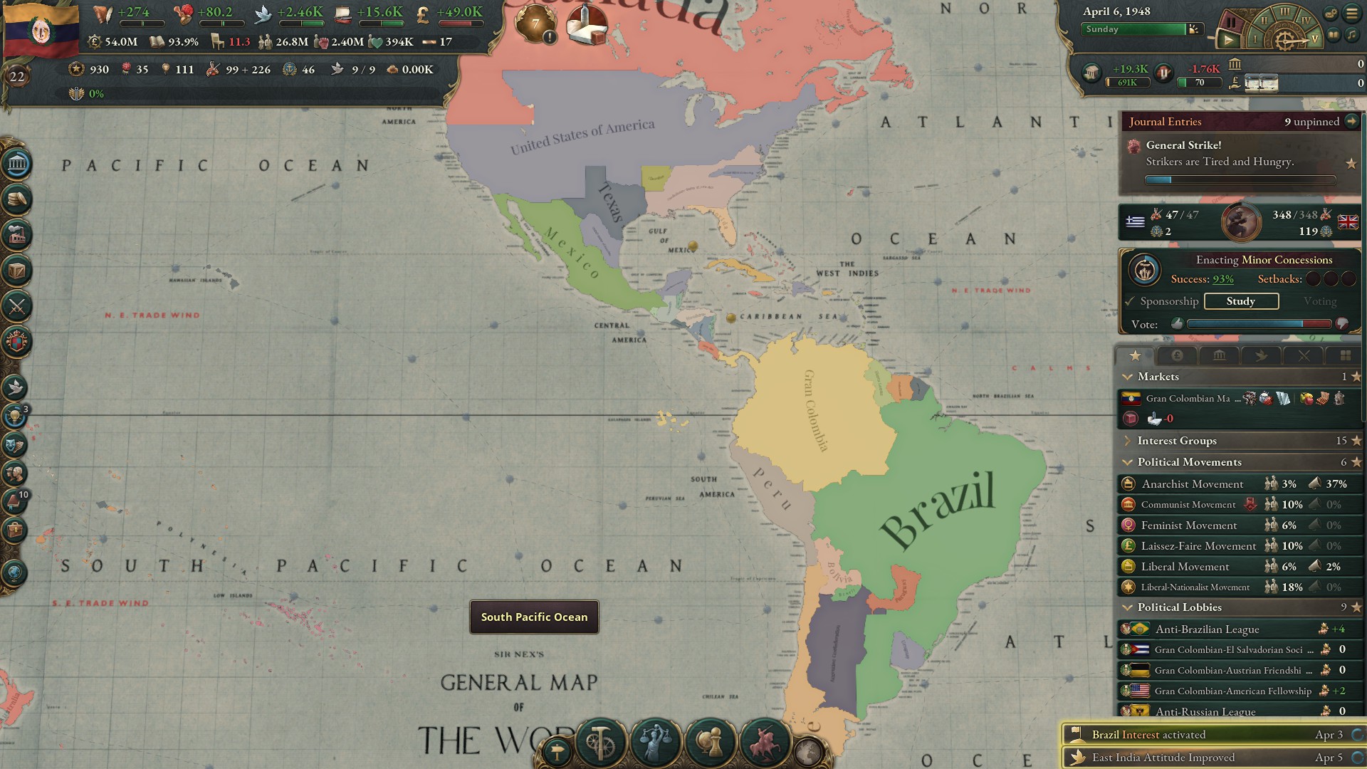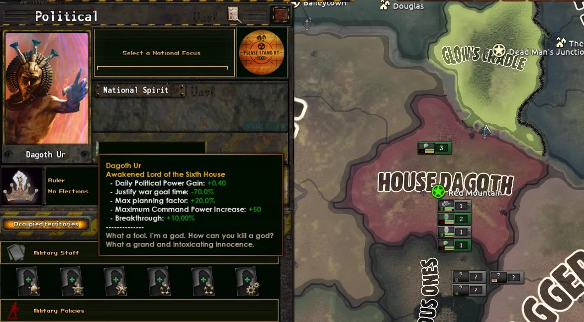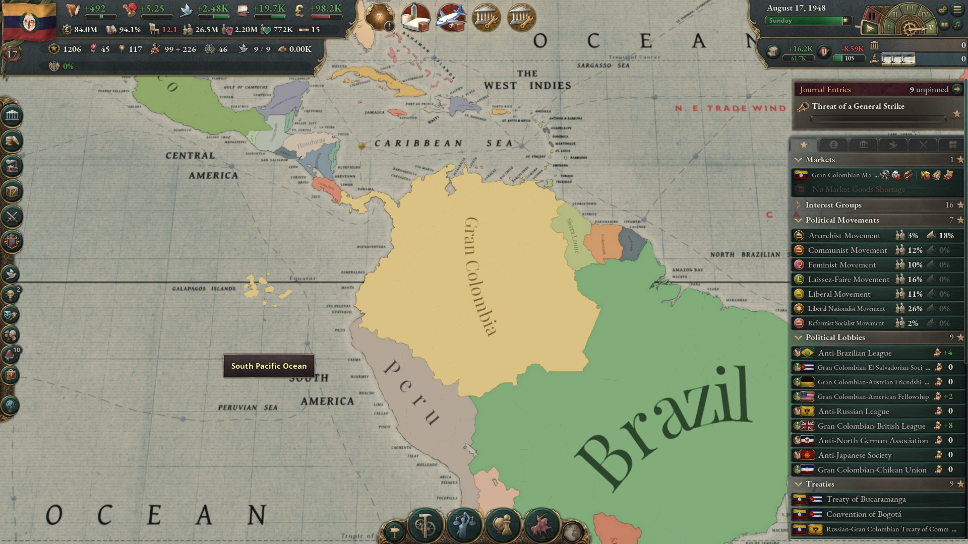 Picking up where Open V2 left offThe goal of Project Alice (named after Alice Roosevelt Longworth) is essentially to create a new version of open v2 – my earlier project to create a Victoria 2 clone – and then to finish a working, feature complete, version of the game. This means that, at least initially, there will be few departures from doing things as Victoria 2 did them, simply to keep the project focused and on track. Once a 1.0 is complete, we can then use it as a playground for new experiments. As of July 2023, I have basically caught up to where open v2 was, minus some deficiencies in the ui.