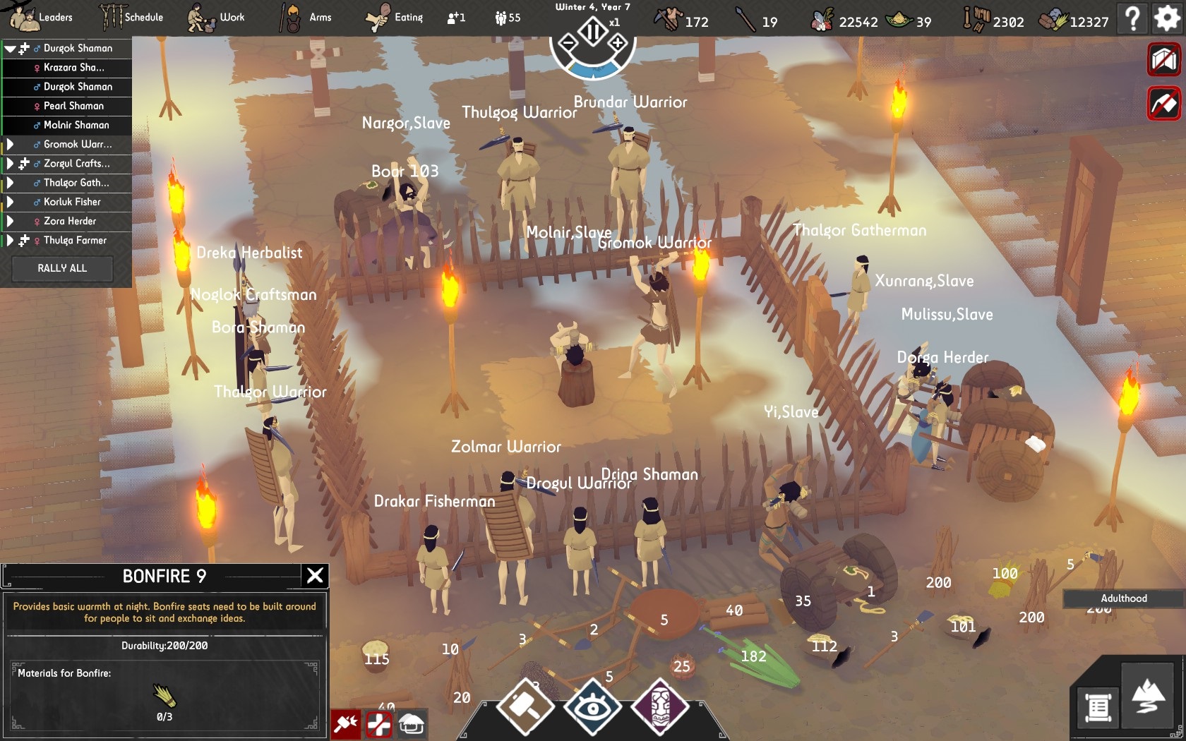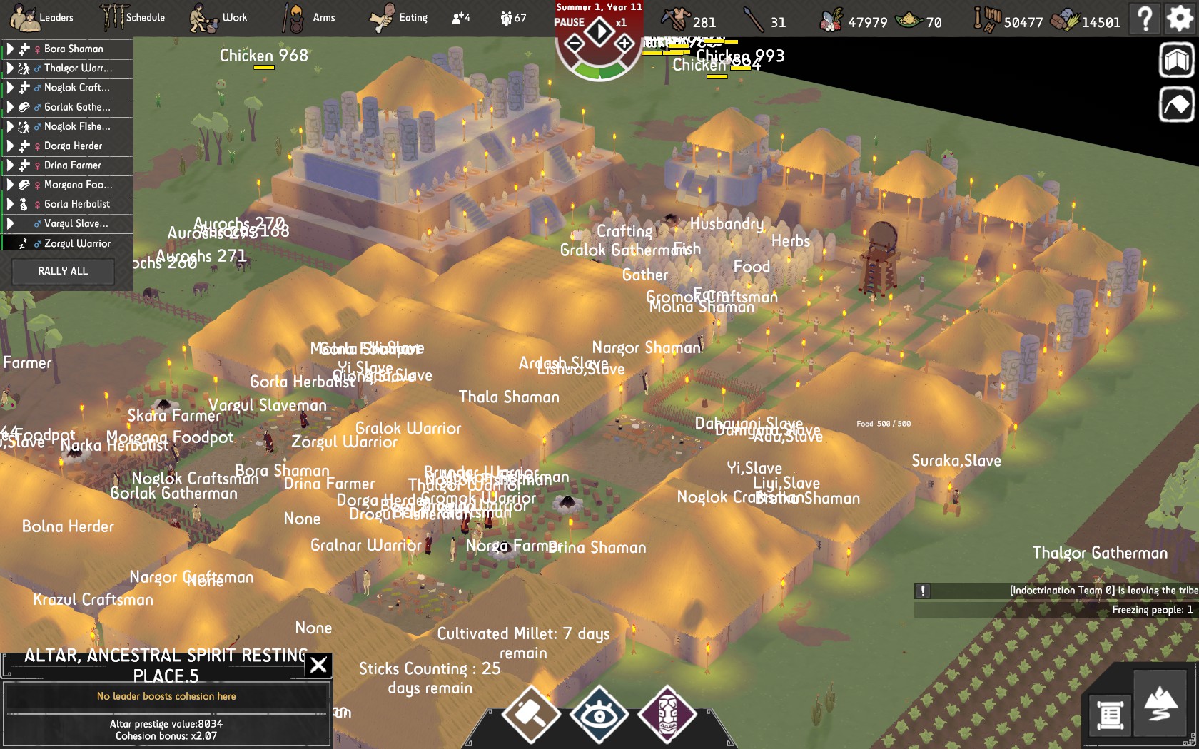 Primitive Society Simulator is a historical society-building game that lets players guide a prehistoric tribe from a simple communal existence to a stratified civilization. It begins in an egalitarian “primitive communist” stage, where resources, labor, and tools are shared, and there is little distinction between individuals. As the tribe develops agriculture, metalworking, and trade, it begins to produce surpluses, allowing some members to specialize as craftsmen, warriors, or leaders.