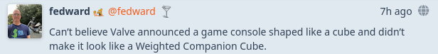 and quite hopefully it'll *probably* flop because Steam is underestimating the console players parasocial relationship with the companies behind their consoles, and Valve meatriders already own a PC.