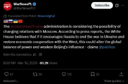 <A Trump administration official, granted anonymity to discuss ongoing negotiations, said finding a “way to align closer with Russia” could create “a different power balance with China that could be very, very beneficial.”