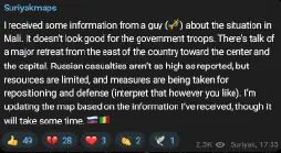 https://swentr.site/africa/639117-russian-forces-pound-terrorists-mali/Russian forces pound Western-backed terrorists in Mali (VIDEOS)The militants lost more than 1,000 soldiers and 100 vehicles while attacking Bamako and other cities, the Africa Corps has said