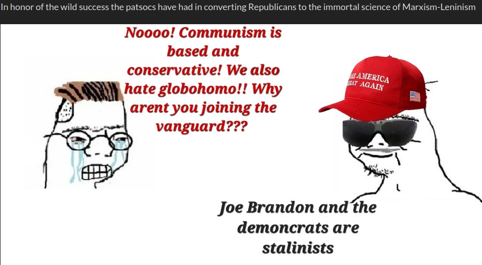 >>2566518>It’s not easier or more fruitful, porky dumping massive amounts of reactionary’s in the west actively makes a revolution impossibleYes, it's why the pro-monarch reactionaries that held a large foot hold in Russia were able to stop the revolution dead in its tracks! Wait, that's not right. No, its why the nationalist forces that held a large foot hold in China were able to kill the revolution outright! Wait, that's not right either. No, it's why the Vietnamese nationalists were able to consolidate their sizable numerical military advantage to make communism an impossibility in borders of Vietnam! Wait, shit, that doesn't sound right either…