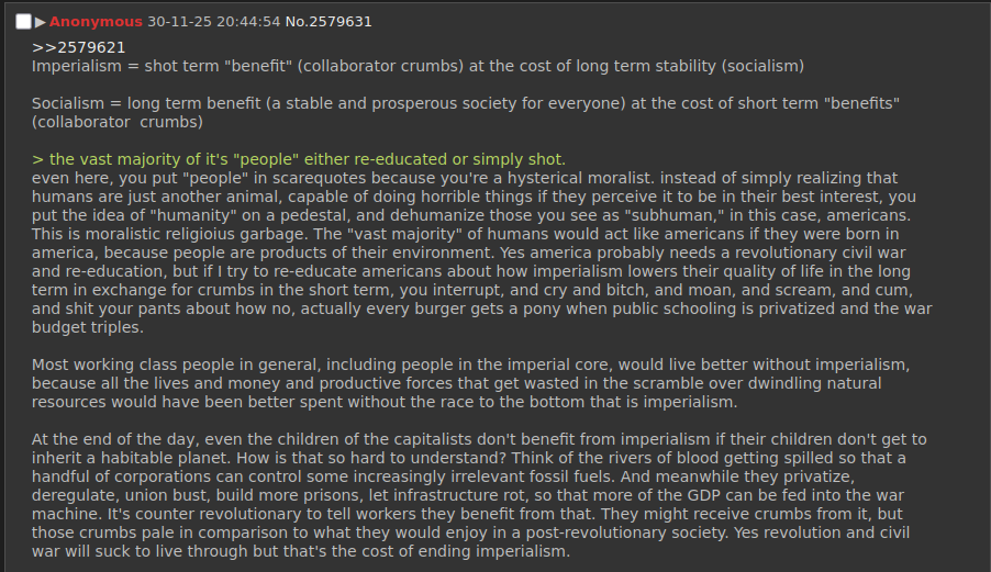 So I don't blame BE for indulging the drama at all. And even then, BE has kept a principled anti-parasocial and anti-imperialist agitation line to his "slop channel" as well. I say this not as a fan, but as a random anon on an IB, I hope BE does well though the post-Milei period. Because it's probably gonna get ultra shitty and, if everything goes according to US vibes, coincide with another US sponsored blue wave across south America.