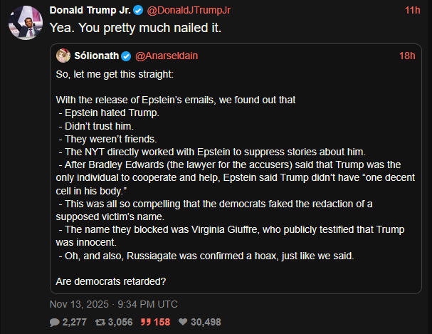 Does that make sense? If you really had no principles, wouldn't it be easy to just do what is politically expedient to help your career at such a crucial juncture? Nobody is making you hand your microphone over to America's most virulent white nationalist and antisemite.