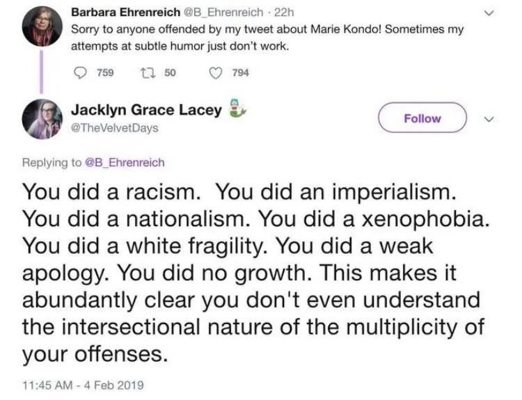 >Some you get leftists who will say "this is just a distraction" and they don't make an effort to actively combat it, and that's a problem.Just have a policy of equal respect instead of trying to treat every single little group a completely different species with it's own stupid made up cultural requirements. Does it really matter if the gears of a machine are superficially colored darker, lighter, or it's finish is shinny or dull? Capitalist don't give a fuck so why are we required to dive through all these hoops?