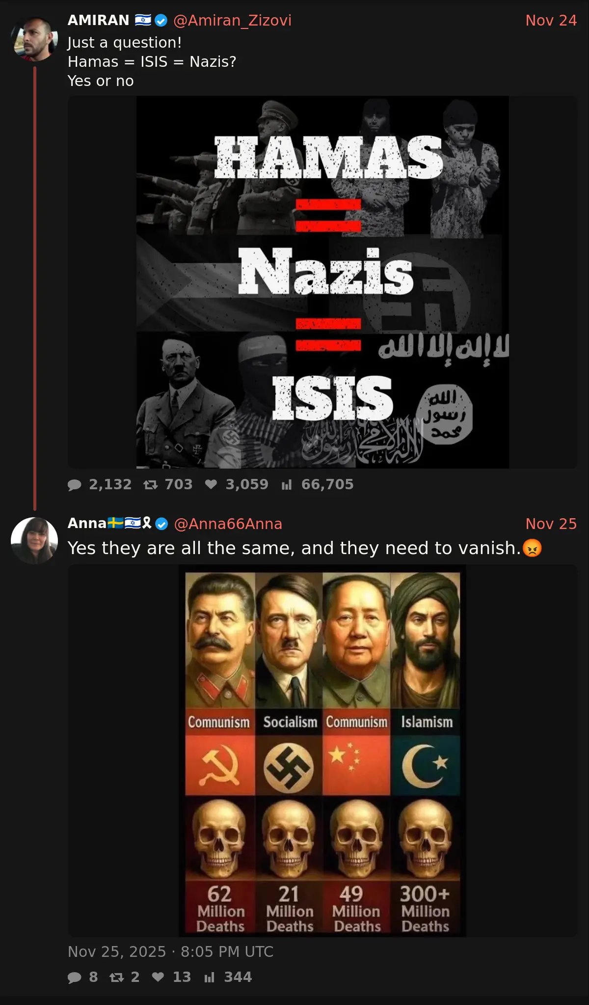 >>2579341The Israel comment is crazy because this is like a complete inversion… Israel constantly claims that Palestinians want genocide issuing identical logic.