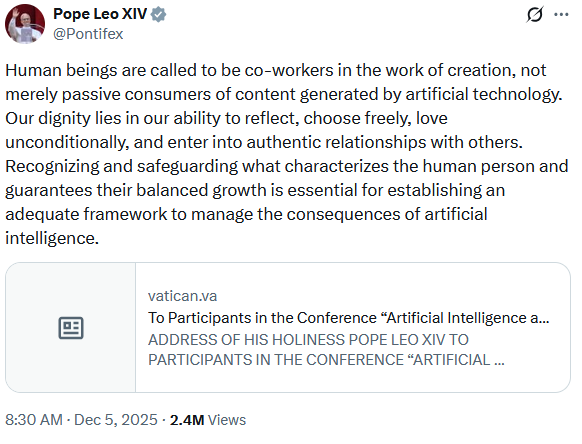 >>2607206<Humans need to be worker slaves foreverThanks, Mr Pope.