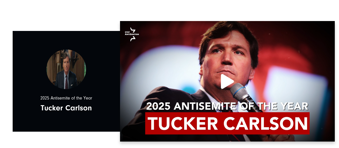 I just heard that tucker carlson won antisemite of the year 2025. I could have sworn ms. rachel already won antisemite of the year this year. between this and the number of women who have won I'm starting to think this isn't a real contest.