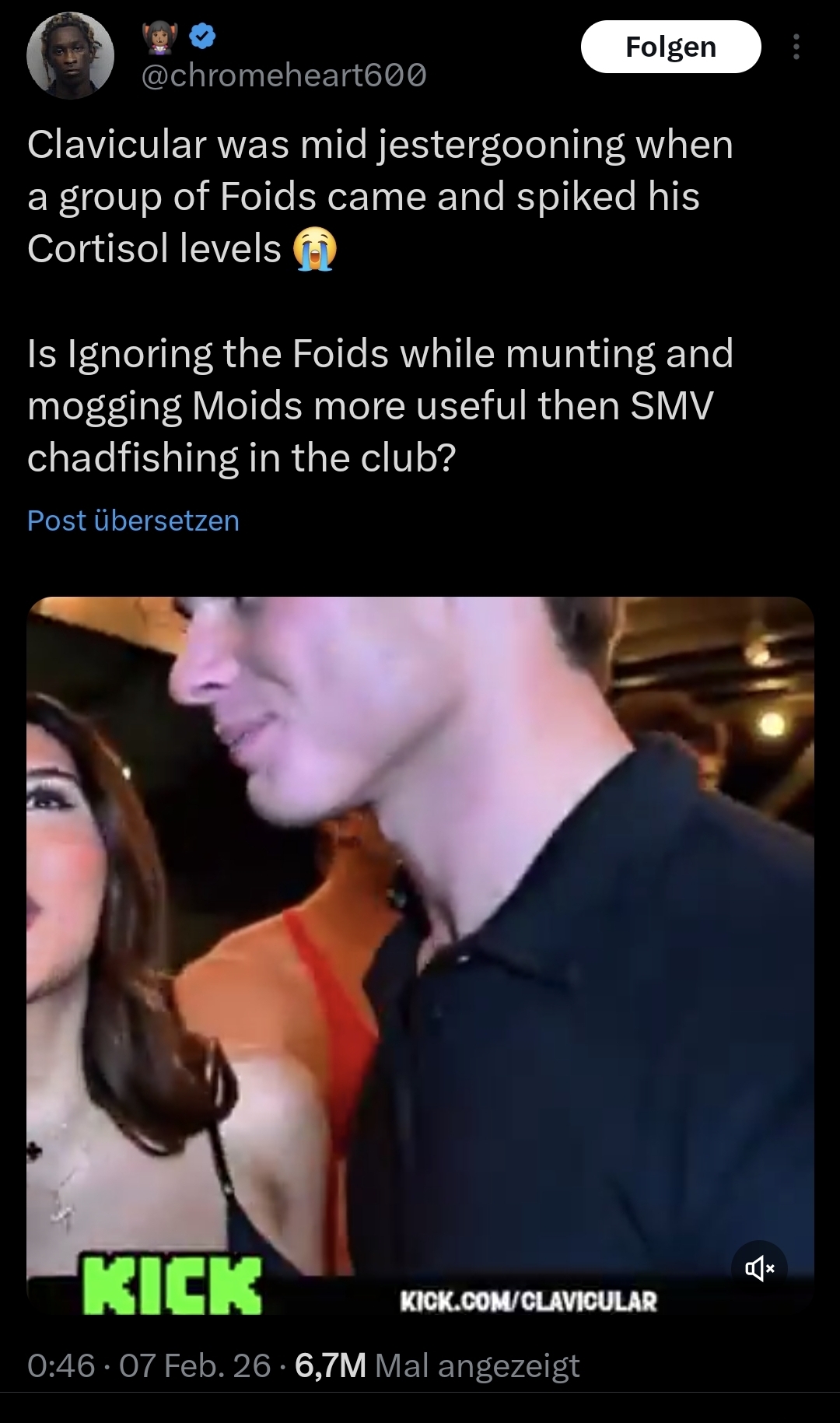 >>2685435Clav will start prison bitch maxxing and lowering his cortisol by being protected by big black bubbas