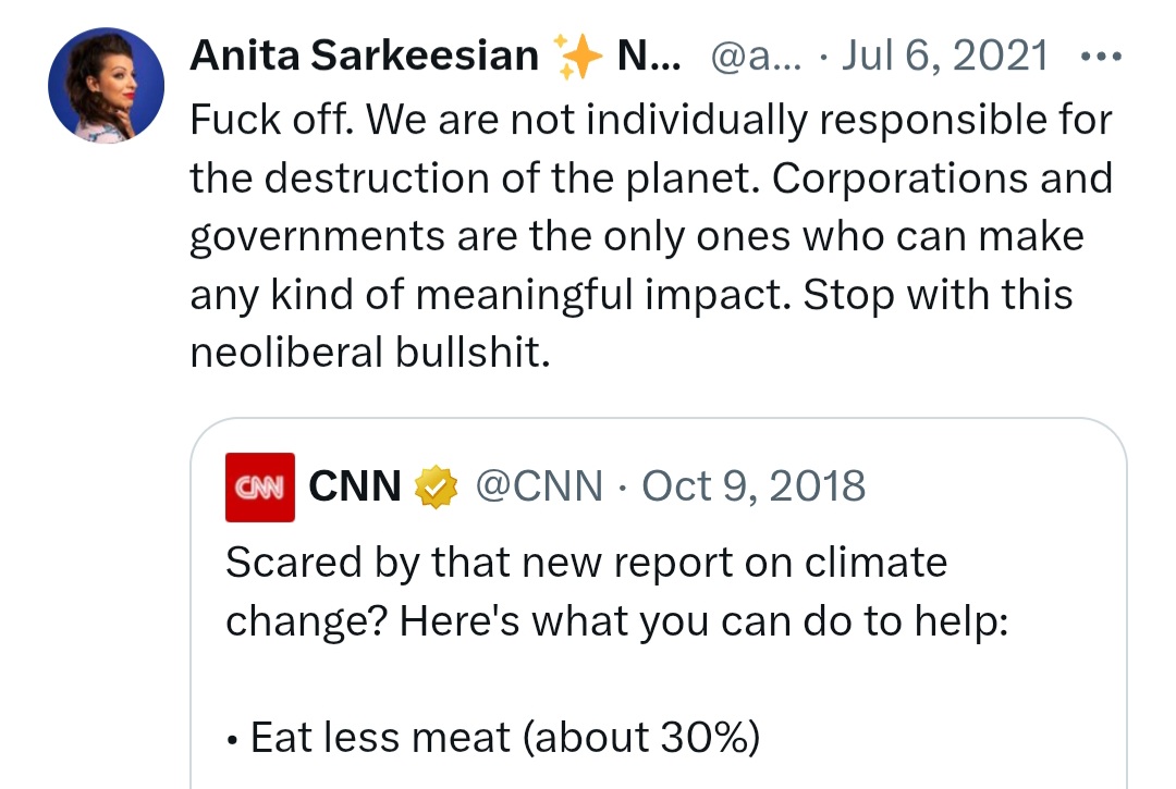 >>2686343>Sarkeesian>"Stop with this neoliberal bullshit"Here's someone who remembers her for what she is