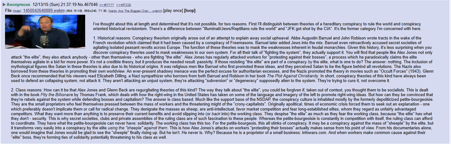 >it just looks like agit prop to meIt all depends on the context. What I see here instead is socialists discussing the slogans amongst themselves and convincing themselves that it's necessary to vulgarise Marxism "for the masses" as they repeat the things they come up with for that purpose to each other. The reality is that the people who mostly benefit from conspiracies are mostly far-right grifters who say that the Jews control the world like Candace Owens. It would therefore serve us much better to focus on the theoretical and organizational development of scientific socialism, educate each other and advance the socialist programme without unnecessary demagoguery.