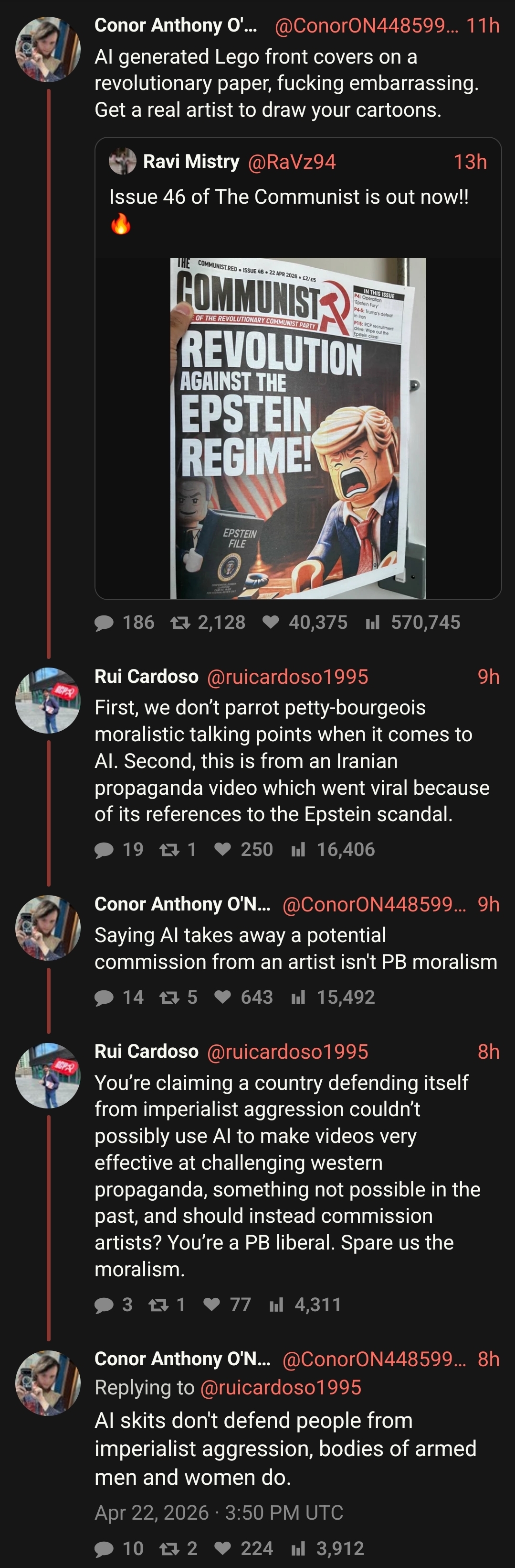 >>2783059Left xitter is such a cesspool of stupidity and virtue signaling. What's worse is how it bleeds into other left wing spaces online.