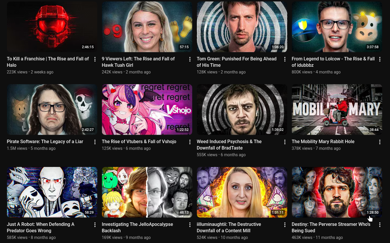 >>2790930>>2791050I'm not a big fan of him but his videos are like 5 hour deep dives on niche topics that are hard to research so it makes sense it takes him forever to make those.