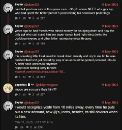 <The responses in this thread defending her are honestly shocking to me. And frightening,<Truly aghast, mortifying, dread-inducing. Who the fuck thinks "I have serious mental issues…And that's your fault!" Is a serious line of argument. Like just keep that to yourself dude and maybe ask your doctor to put you on stronger meds.
