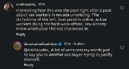 If the answer is no, you wouldn't support them, are you going to talk about unproductive labor? If the answer is yes, then why would it be any different for women working legal brothels?