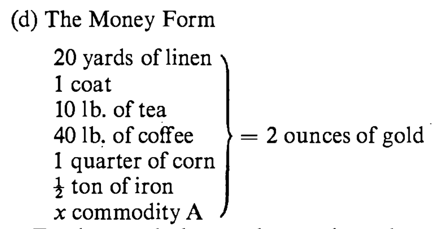 >the view of those who deny the commodity character of money because “money as such, especially in the form of coin, does not serve any consumption purpose” is untenable simply because the same argument can be advanced against the commodity-character of all other goods […] The coin and the ingot are the most common forms in which the precious metals are traded, and the fact that these forms must be abandoned before the pre-cious metals can be brought into consumption is therefore nothing that justifies doubting their commodity-character.