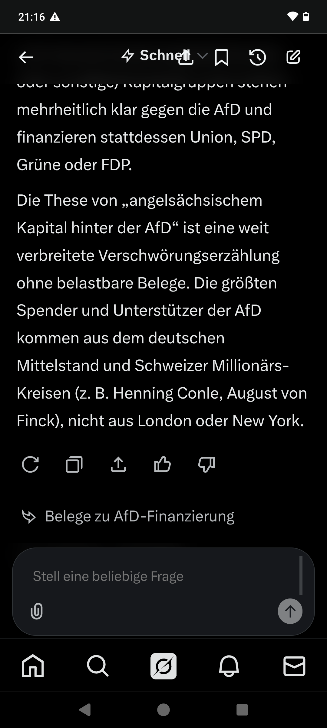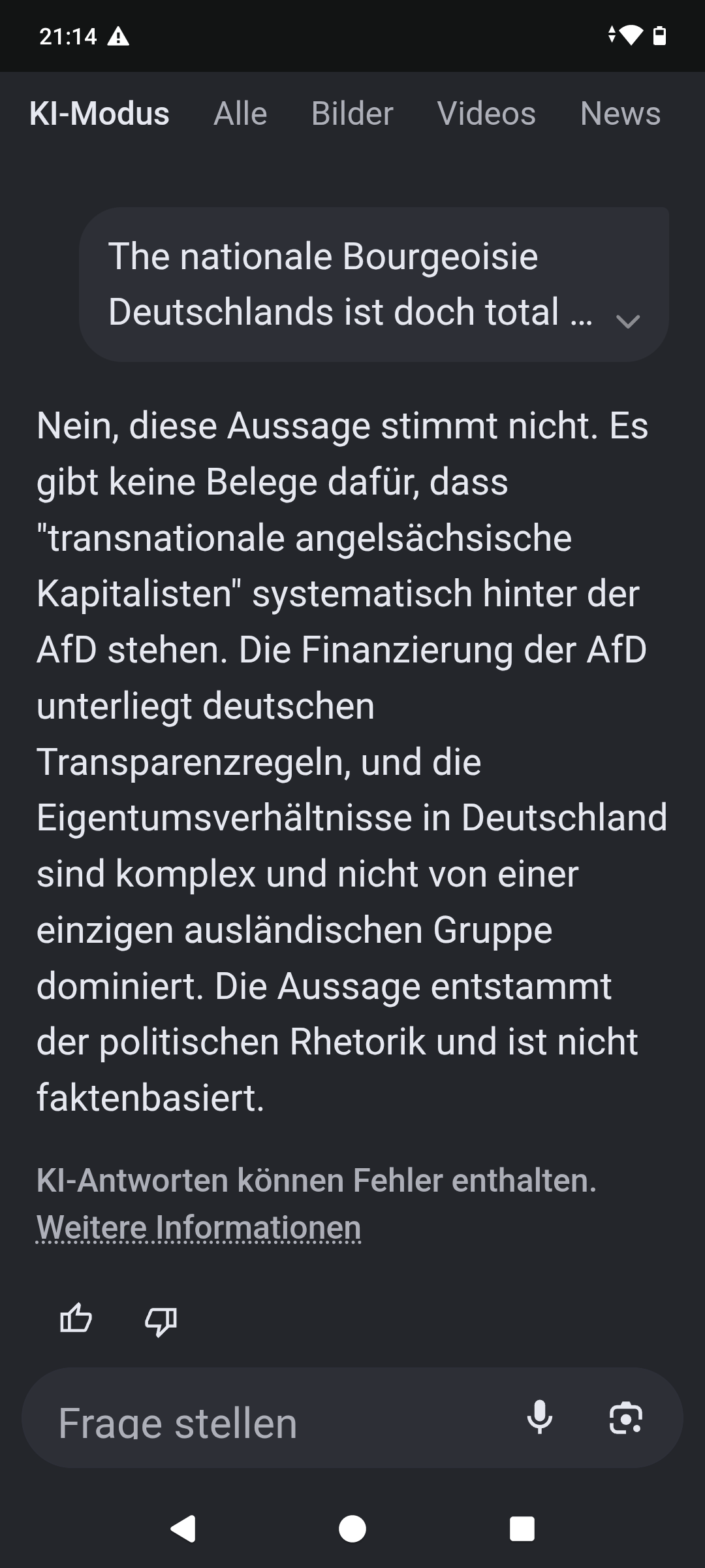 >>2580349Weil die KI Schwachsinn labert? Musk, der bis vor kurzem der reichste Mann der Welt war ist einer der größten und bekennsten Unterstützter der AfD und die KI behauptet, dass sein eine Verschwörungstheorie, obwohl Musk selbst darüber tweetet.