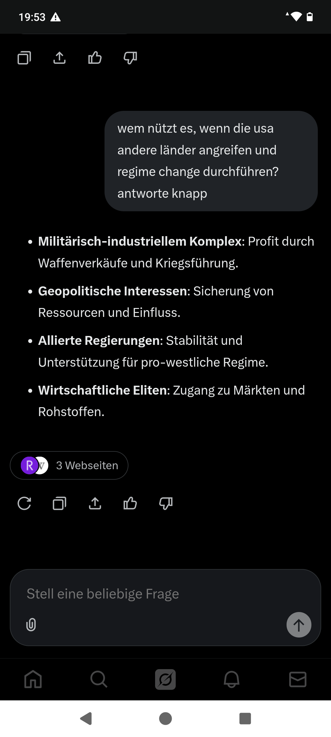 >>2582626Grok hättre dir sagen können, für wen die VSA herrumbombt, aber Grok ist nunmal beschnitten. Tja.