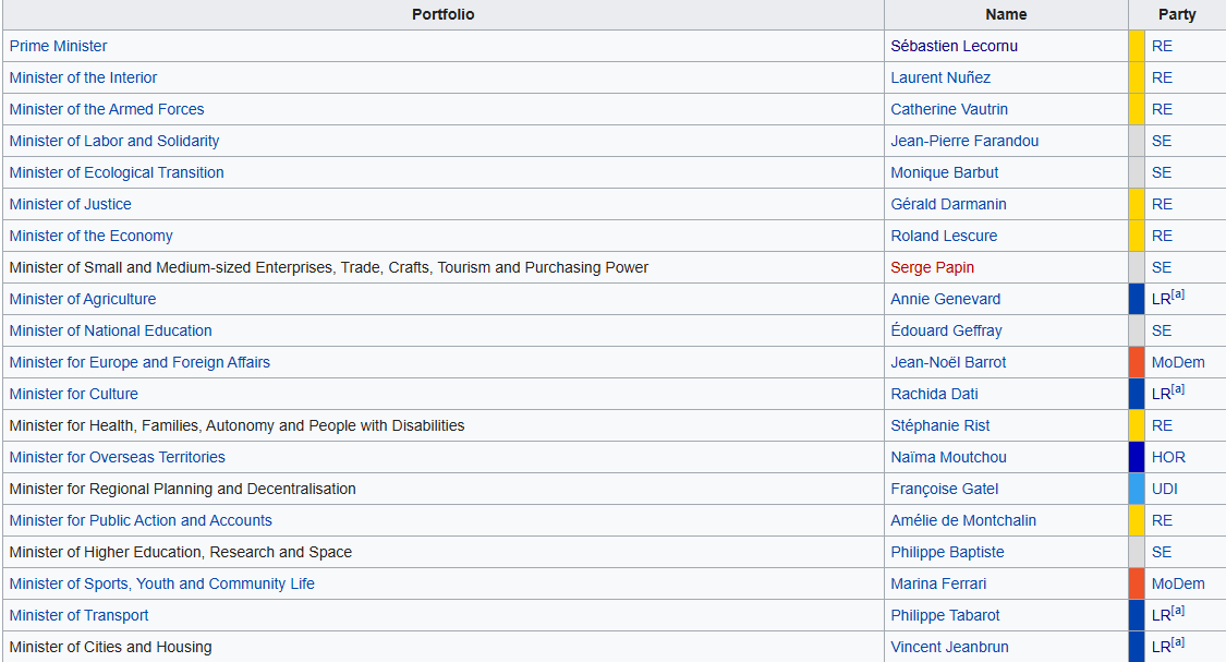 Macron has essentially done the same government again, with plenty of his friends in it, including a rapist at the Justice ministry, he also put a few non-politician figures, and a few LR membrers, who weren't supposed to join, they therefore got fired from the party.