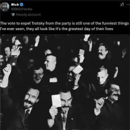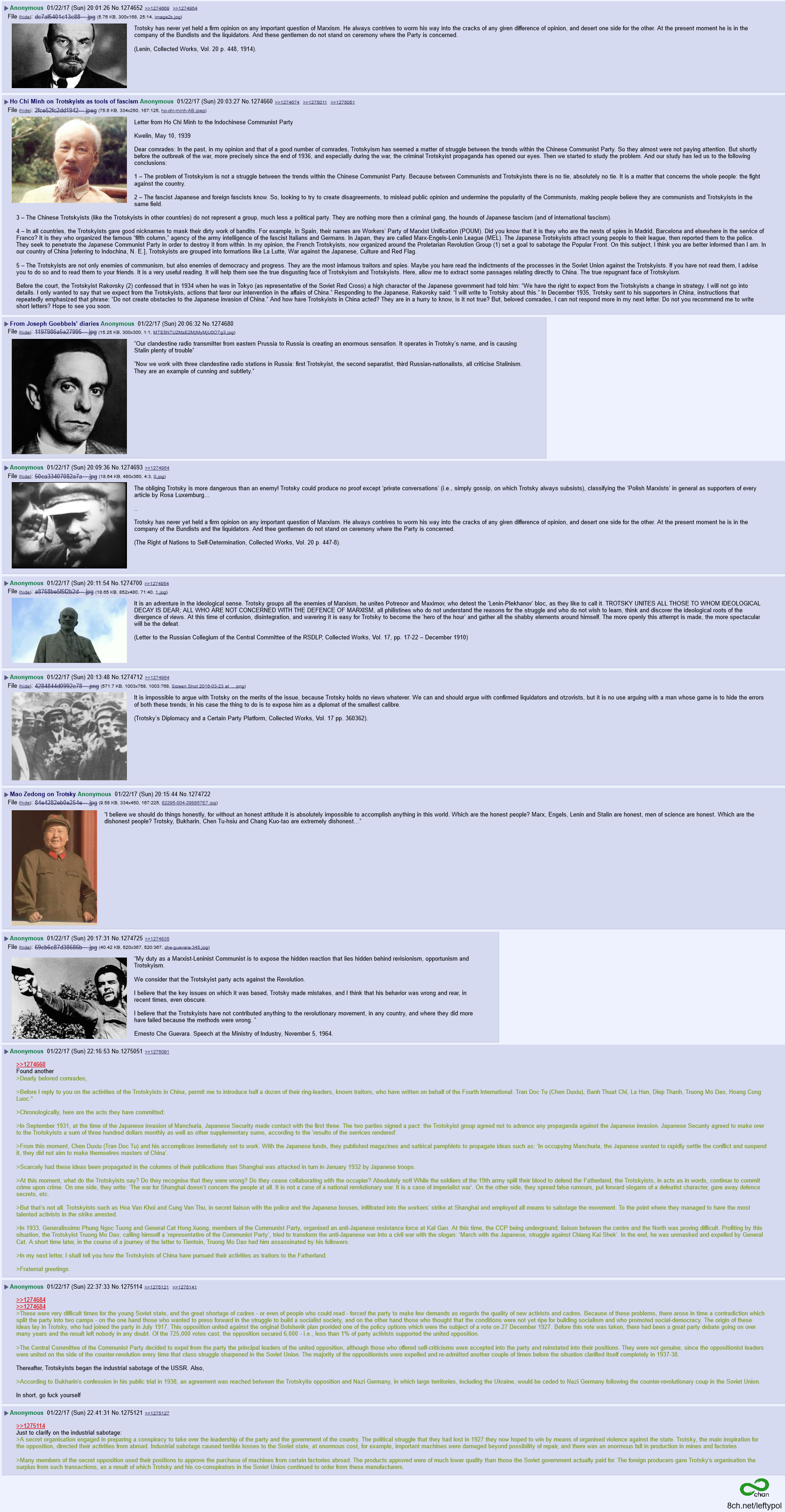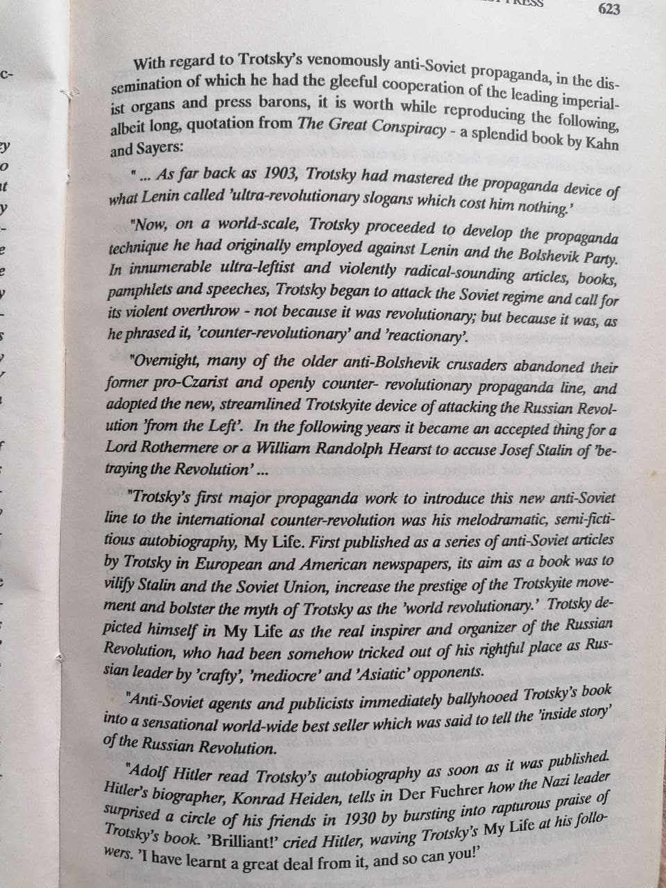 Meanwhile a certain type of (mostly online) MLs like to blame him for everything, he's a splitter who caused disunity across the global left just because of his ego, they use the term Trot as a slur for anything and everything, they believe every conspiracy theory on how he was some secret Nazi CIA spy sending radio messages to RoboHitler in Antartica or some BS.