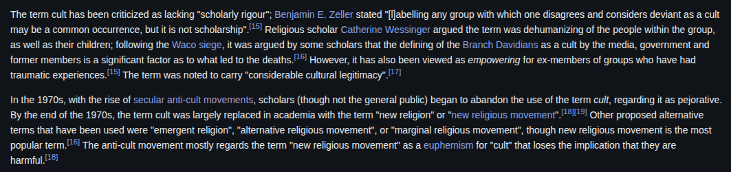 >>2465829>The concept of a "cult"Has existed for far longer than the United States.