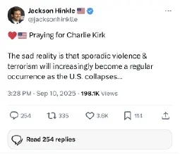 The ACP orbits Haz. Haz decides what is tolerable and what isn't. If Jackson Hinkle says something unhinged which reflects badly on the membership, it doesn't matter because Hinkle backs Haz. There's no vote on the party program. Haz is not responsible anyone but himself. If Haz declared himself the Messiah and argued his MAGAcommunism is divinely inspired, everybody here would agree the ACP is a cult.