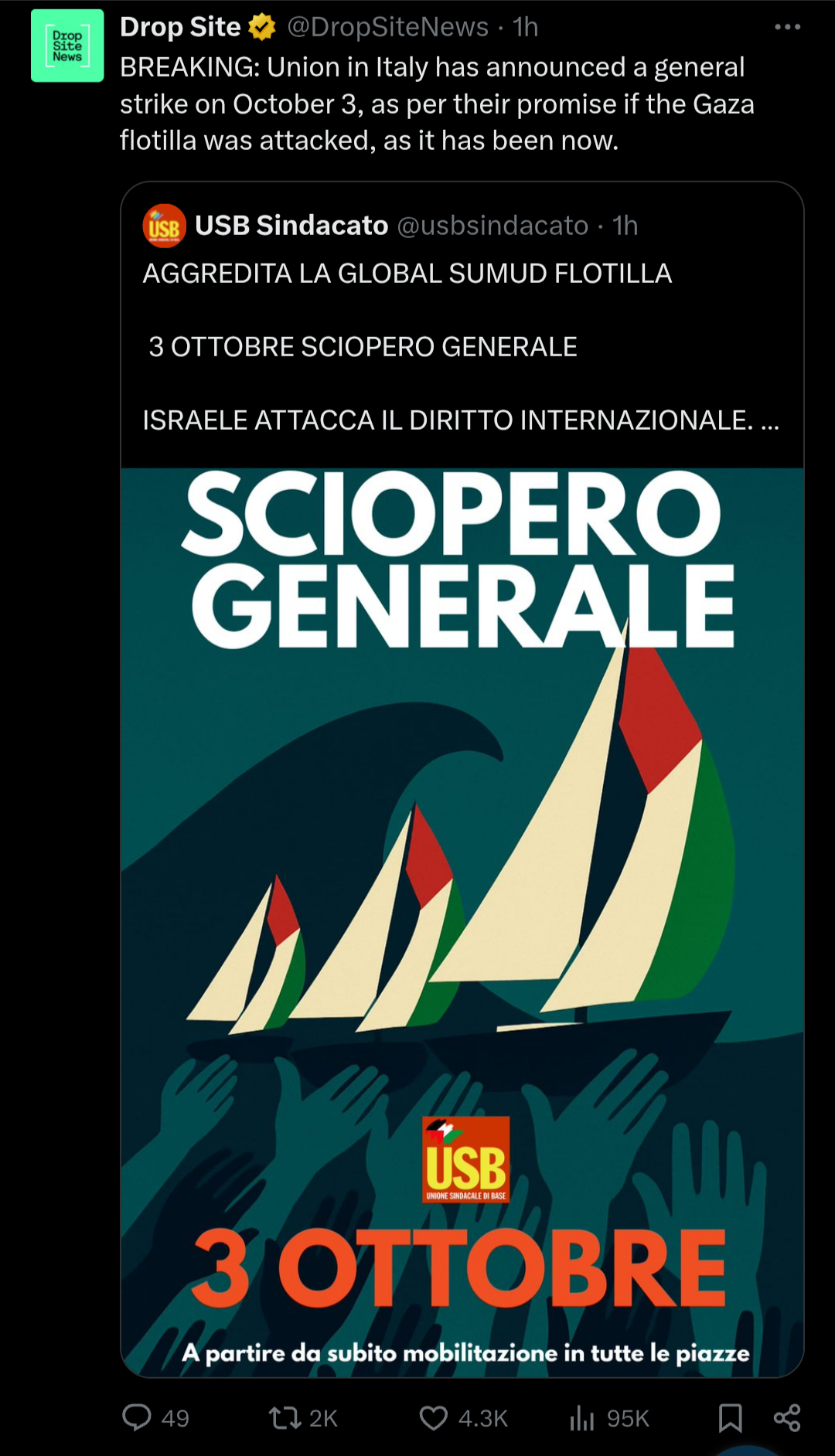 Pretty much It only has picked up now (and strictly framed around the flotilla) to distract from EU and MENA rulers bending the knee and endorsing the second Nakba and Impunity for Israel. And it's only happening now because soccdem affiliated unions and NGOs in said genocidal states were called into action by the genociders in power.