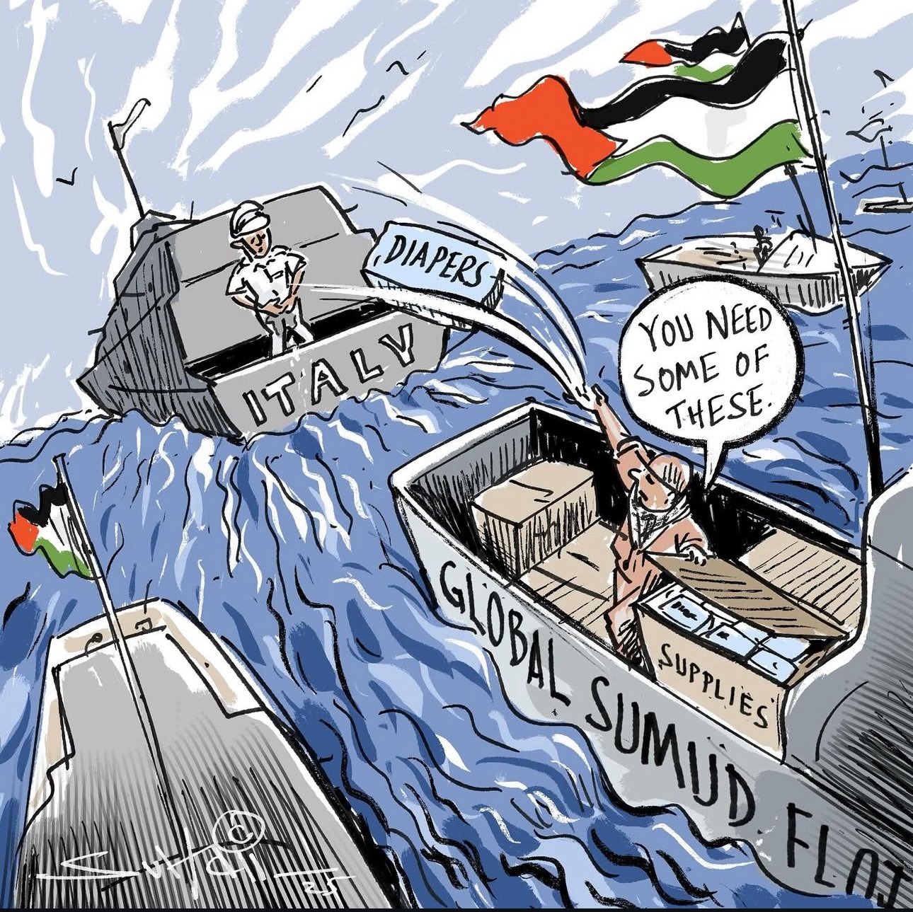 That Sumud Flotilla right is going to Gaza to break the Israeli blockaid. Inspired by the Thunburg Flotilla, the Sumud Flotilla contains far more ships in an attempt to overwhelm the Israeli Navy and Coastguard. The Sumud Flotilla departed from Spain at the end of August and is scheduled to be joined by more ships from Tunisia alter today. They expect to arrive at Gaza sometime next week.