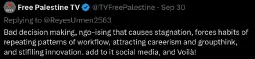 The problem with guys like Fuentes and his followers is that they sit around all day saying "it's the Jews!" but they don't actually do anything. They spend more time criticizing other right-wing anti-Zionist talking heads like Candace Owens for not explicitly hating Jews enough than they actually spend taking any kind of action which would directly impede Zionism. If they want to help target finances, media, the lobby, employees of the "Israeli" state, and arms factories then they are welcome to; but thus far they just seem to sit around saying things which they know come across as volatile and trying to have "debates." I disagree with them, in that I think their interpretation fails to address the nuances of Zionism, but I think debating this is a waste of time. I don't really care that they're wrong, in my opinion, what bothers me is that they're functionally useless.