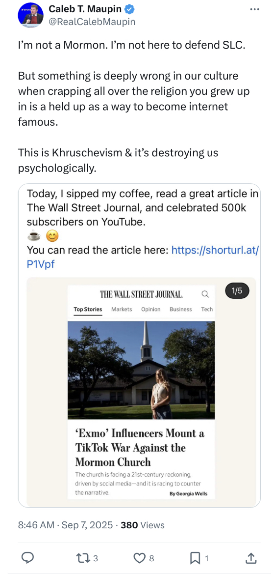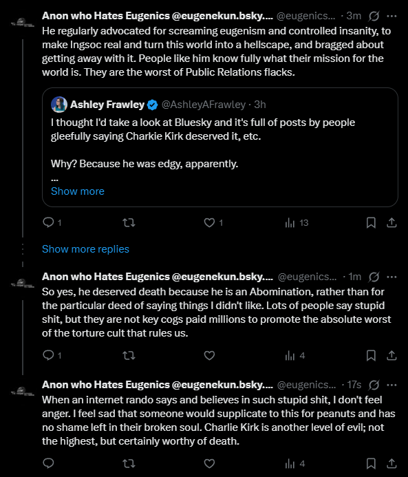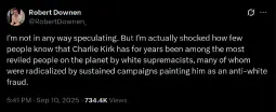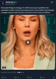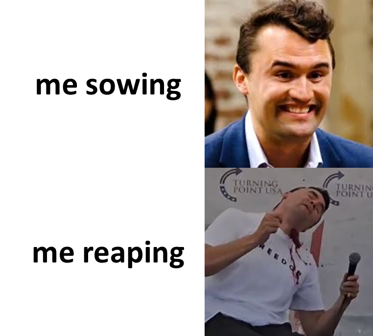 tbf i do feel for his kids (though they'll likely be better off growing up without charles kirk for a father) but i have zero empathy for his wife