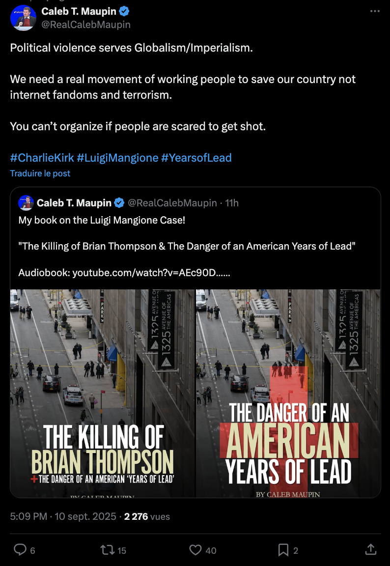 >>2472159That the cops haven't caught the shooter yet adds some extra menacing terror-from-nowhere vibes to this whole thing which should drive the news cycle for a little bit. The right NEEDS the shooter to be a trans communist-socialist leftist extremist but they don't know. Leftypol was just as shocked as everybody else.