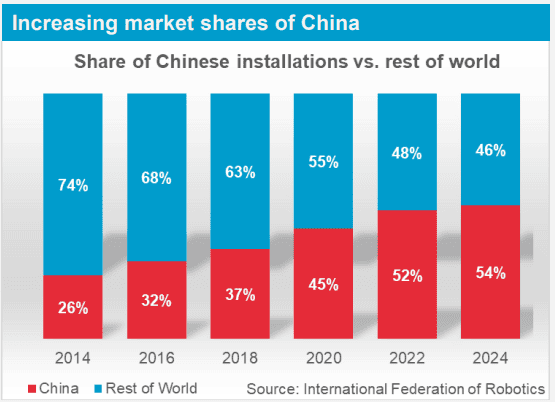 >Industrial AutomationChina's far ahead on that. In fact, they have more industrial robots than anywhere else on Earth and the number is continuing to grow. Contrary to what a lot of people here seem to believe, China has long since moved beyond assembling clothes or cheap toys for 10 cents/hour or whatever.