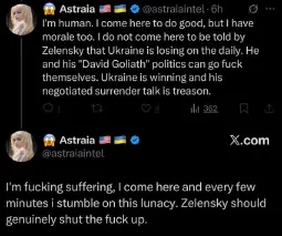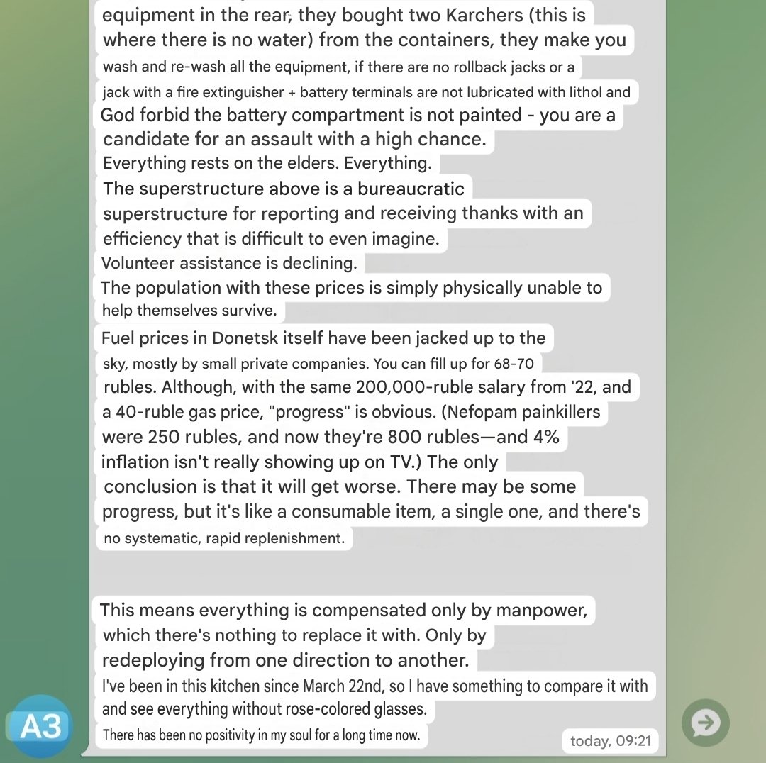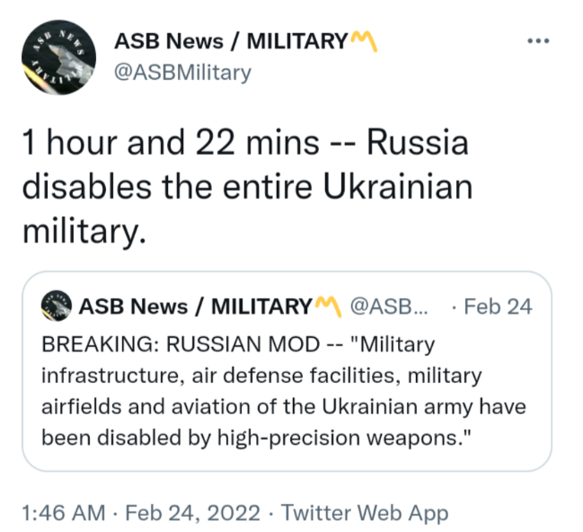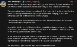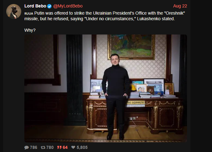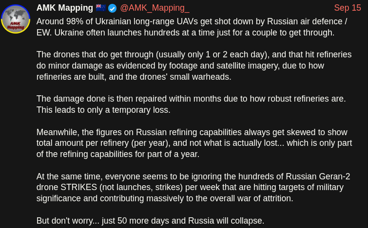 In one post he has managed to completely undo years of meticulously propagating every video of a drone hitting Russian materiale and strategically reposing old footage as new, presenting different angles of the one destroyed target as multiple targets to build a narrative that Russia was being attrited hard by Ukraine, because hey, it was all recoverable anyway.