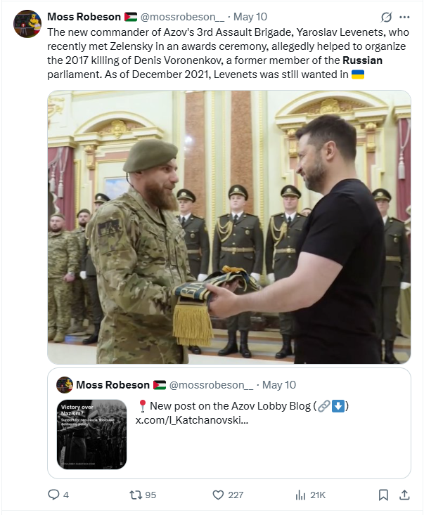 >Yaroslav Levenets 5th picture, was the co-author of the killing https://en.wikipedia.org/wiki/Denis_Voronenkova fucking Russian communist who deserted and renounced to his russian nationality in favor of ukraine >In March 2017 the Ukrainian National Guard (UNG) identified the perpetrator of the crime as Pavlo Parshov (Ukrainian: Павло Паршов), a 28-year-old far-right Ukrainian nationalist and former member of the National Guard who was previously suspected in a money-laundering case. He died in custody in intensive care unit from wounds sustained at the scene. His nom de guerre was the Boxer.[28][29] The same month Ukrainian MIA placed on its wanted list Parshov's suspected co-conspirator Yaroslav Levenets (Ukrainian: Ярослав Левенец) who previously fought in the War in Donbas in the far-right nationalist Right Sector group and had history of arrests for various crimes in the pastYOU CAN'T MAKE THIS SHIT UPRIGT SEKTOR CHVD THAT KILLED A RUSSIAN COMMUNIST THAT ALREADY ABANDONED RUSSIA WAS AWARDED HERO OF UKRAINE BY ZELEYAAAA==