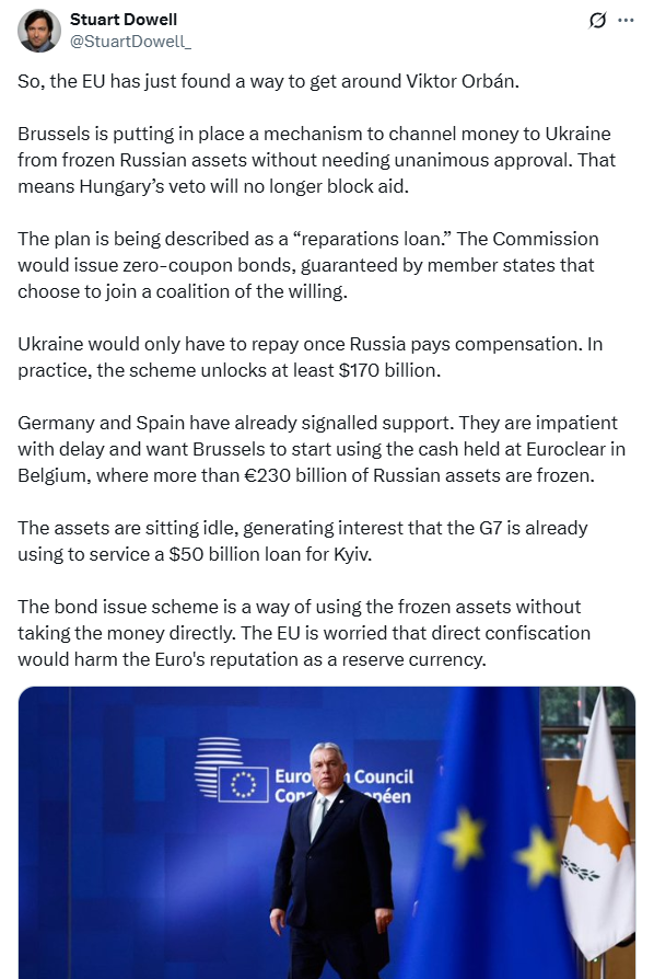 Amounts of funding for Ukraine tell us that this shit has already happened behind the scenes. That's why Euroids cannot do anything with the assets; those are already sold, and reselling them is impossible