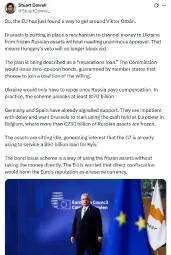 The only reason the EU has been hesitating is economic prudence – fear of undermining their financial institutions wrt third parties, not fear of Russia – but with Magic Don running roughshod over centuries of economic theory with no repercussions, the EU probably feels that it can do the same.