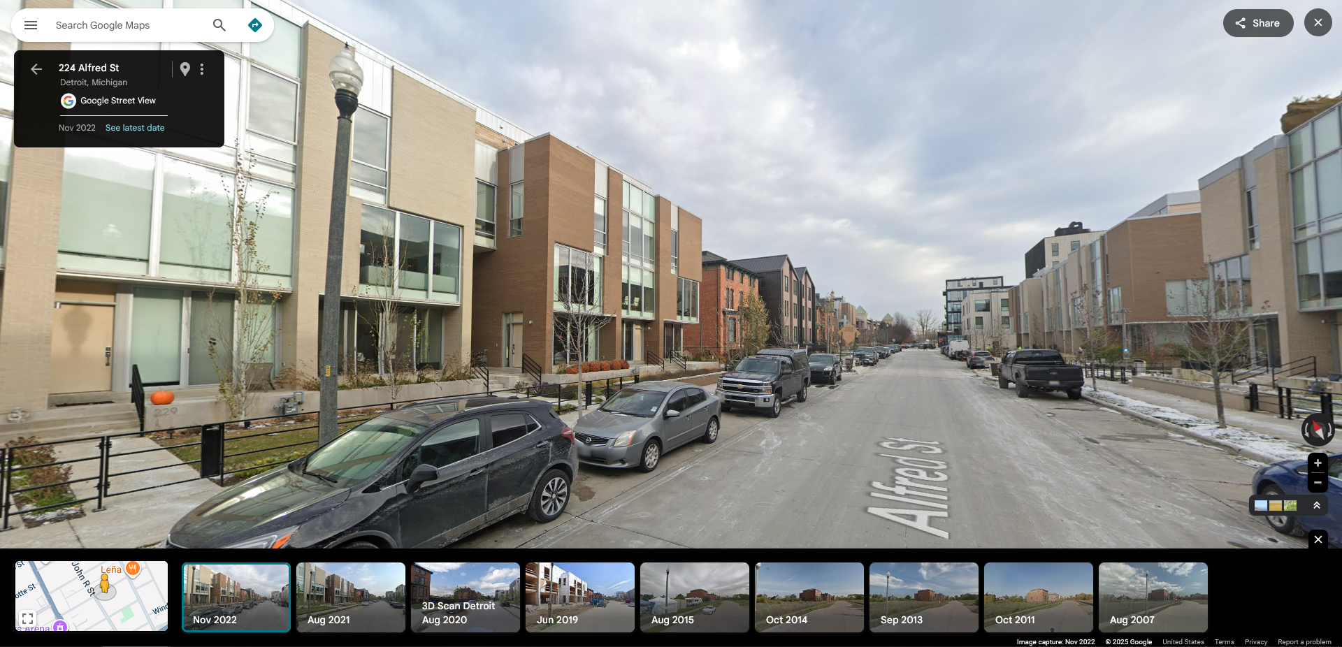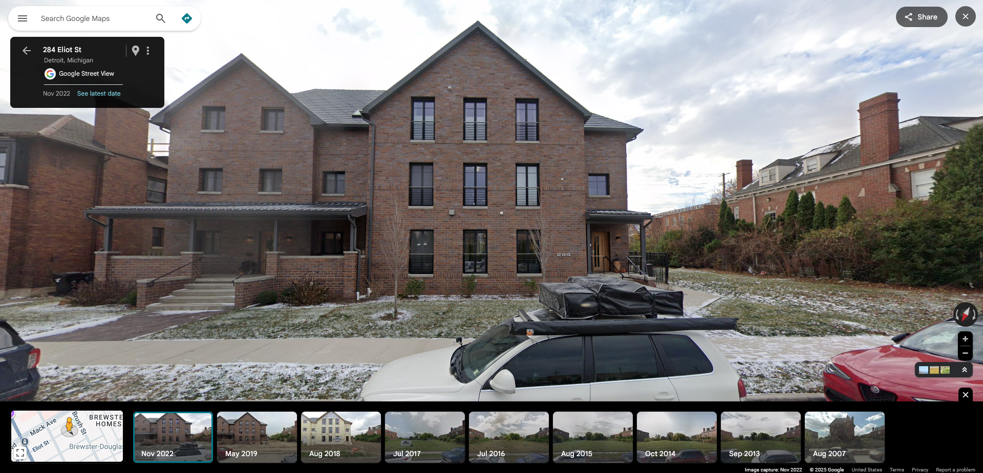 The first house (3610 St. Aubin) is now a vacant lot. The second house (William Livingstone House) is something else entirely now (284 Eliot St).