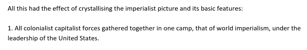 >>2494029Yea, because it doesn't exist. The many years leading up to this war were of capitalism's expansion into a vacuum. We had unipolarity exactly because there were no imperialist divisions, just absorption of peripheral parts of the world and endless regime change wars there.
