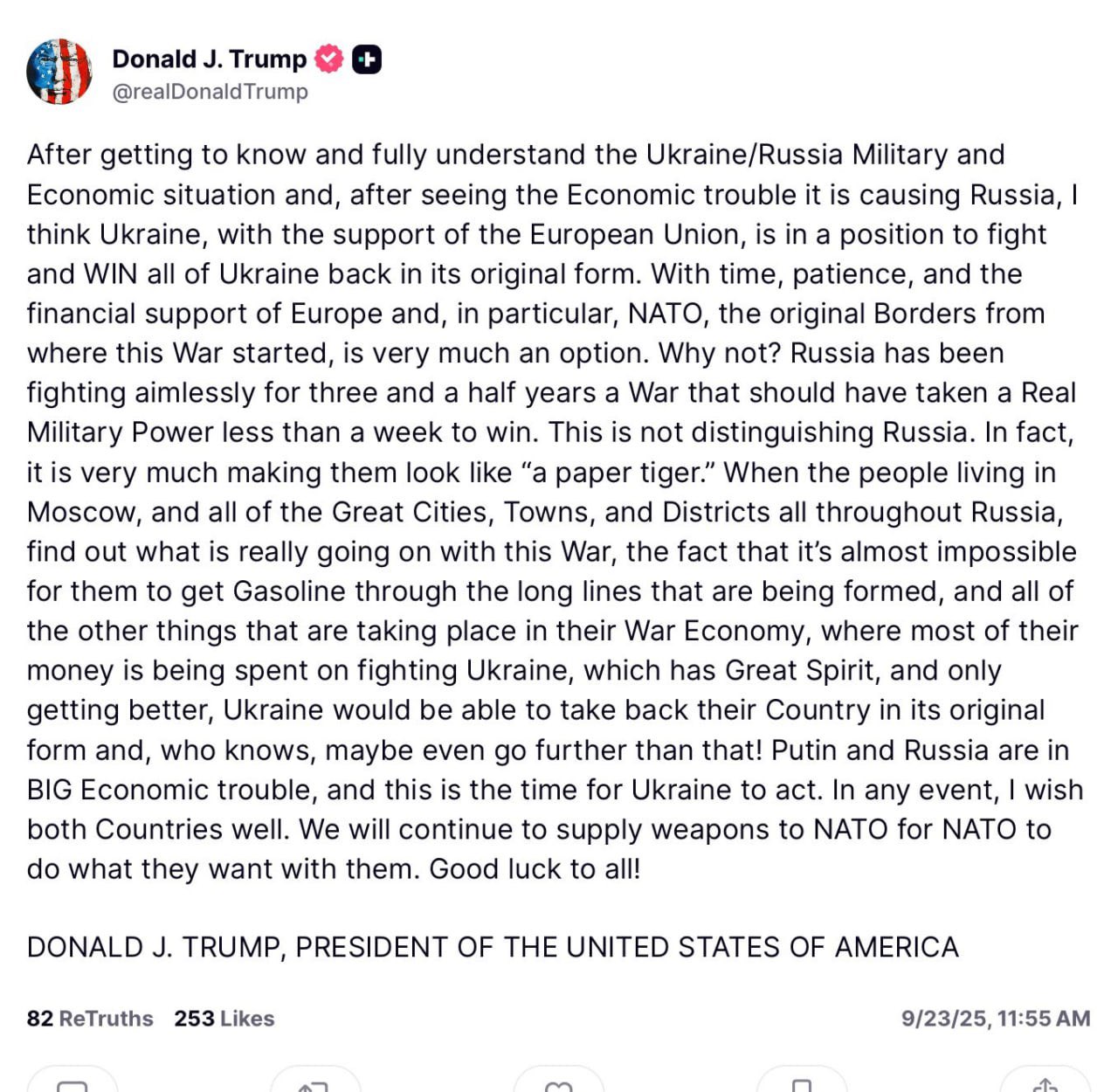 I think Putin should negotiate BTW because the most important thing is to end the war so people stop dying.
