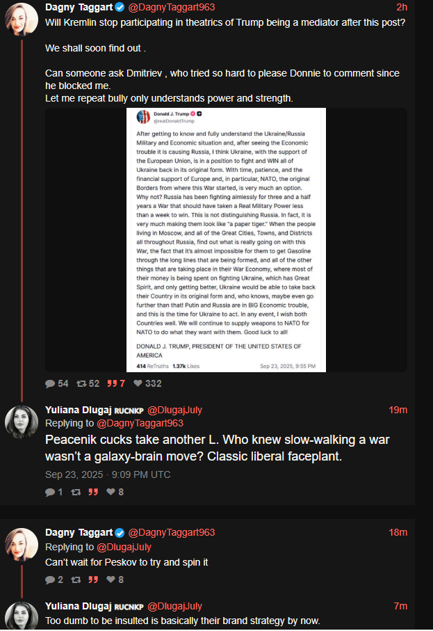 >>2490104>Was the sarcasm really that subtle?I knew it was sarcasm but only because I'm terminally online in /ukr/ and terminally familiar with your sarcasm, having sparred with you more times than I count lmao.