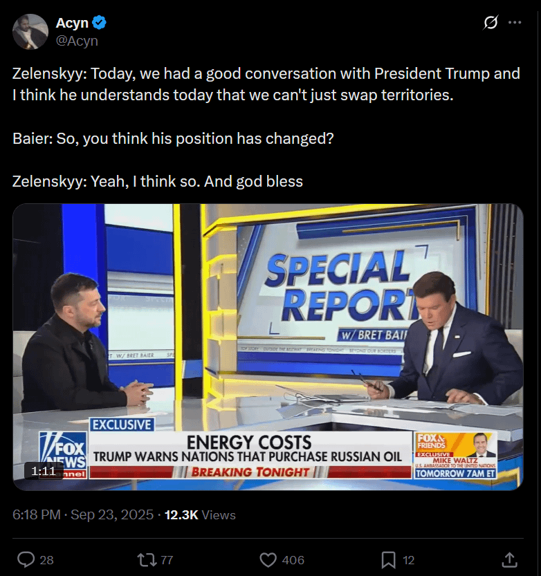 >Zelensky: "Europe and the US need to stop thinking about themselves and their future relations with Russia and start thinking more about Ukraine.