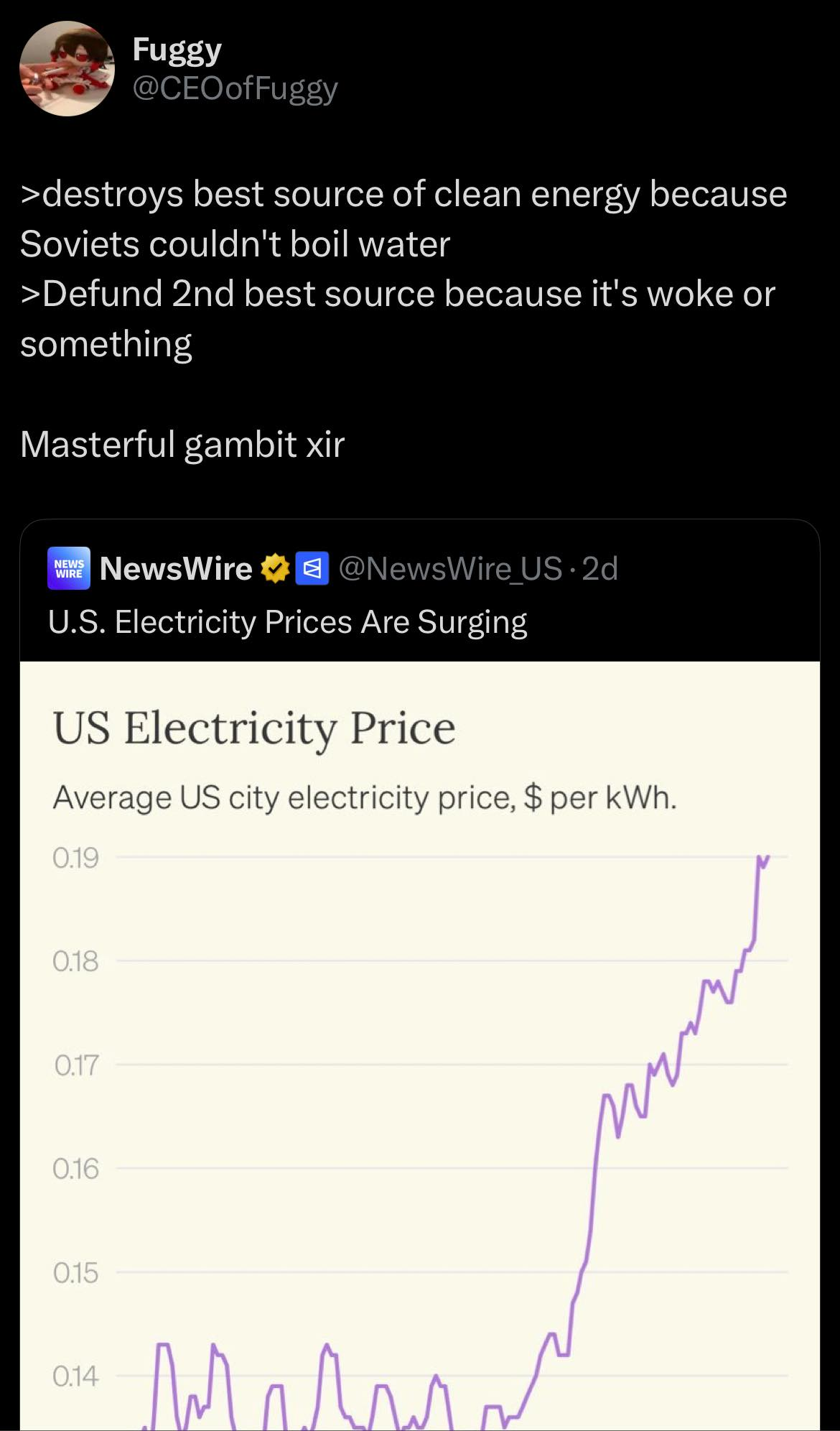 But it didn't go as planned. The ruling classes are capable of making mistakes, they're human after all. So now you have the campists making up all kinds of bullshit copium about what the REAL reason for the war is, and some of them just say Ukrainians deserve the suffering with tears of rage in their eyes. Meanwhile the rest of the world is just laughing about this war, and some even profiting from it.