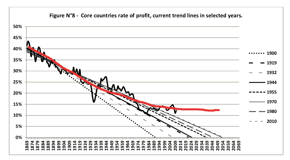 global but there are countervailing tendencies, and wars destroy the productive forces, i.e. both constant capital and variable capital, so profit rates actually go back up during a reconstruction.