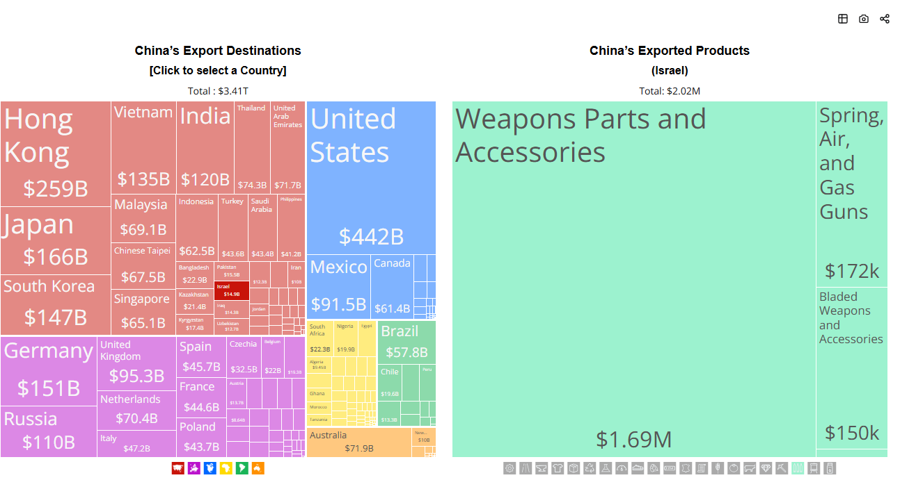 Is it "Good" that China sold 2 million in weapons to Israel? no. obviously not. But what did the USA sell to Israel in the same year? 665 million. That's literally 332.5 times more. It's not even close. And what is China selling? Mostly unassembled parts. It's not "Good" but it's not