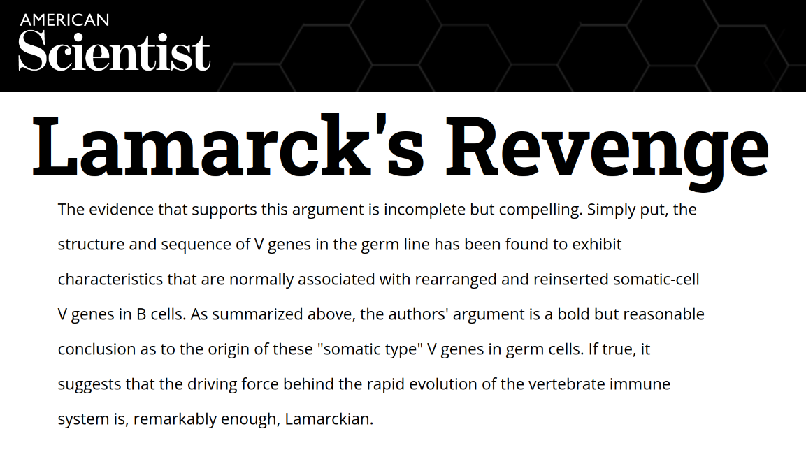 >Epigenetics does in fact mean organisms inherit acquired traitsHA! Called it. Epigenetics is about alterations to how the already existing genes are expressed. It doesn't change the DNA, it just changes which segments are transcribed. This doesn't create new genes it only reorganizes which pre existing genes are expressed. The creation of novel traits requires Darwinian Evolution.