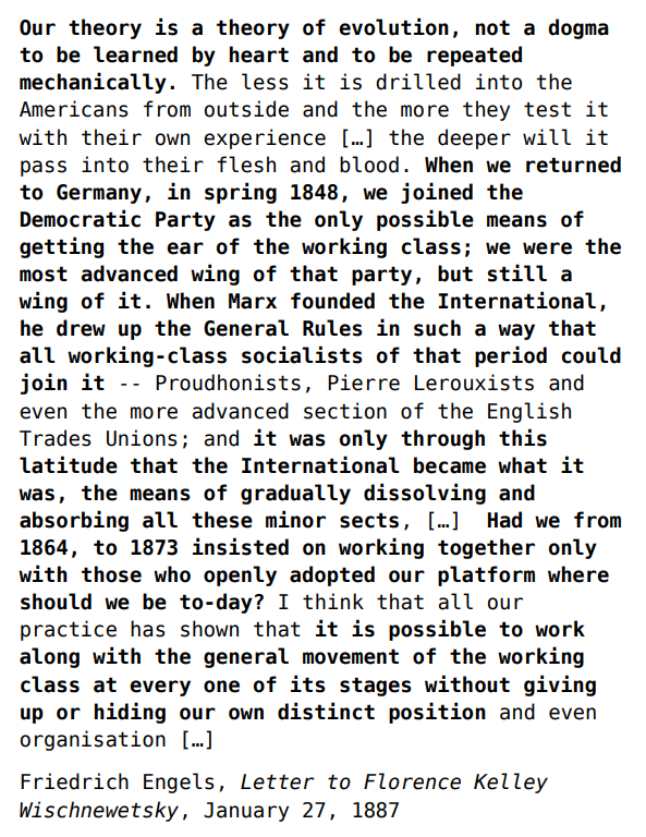 Anyway the idea that the working class requires an oppositional "total system" is a false thinking that the ruling institutions always impose as a "default position" that is granted legitimacy purely because it is default and precedent is observed legalistically. Courts of Law rely on precedent (and not always in the same way), but science is not a court or a thing dictated by lawyers in the way that is insinuated. The scientific inquiry is one that would in principle be independently reproduced in one way or another, even if the particular wording and first principles of inquiries are different; that is, from different first principles, many scientists can arrive at the same conclusion about the universe, just understood differently, and then these models can be compared since they all refer to a thing that the scientific community doesn't doubt. For example, no one seriously doubts there is such a thing as hereditary traits in life. The false dichotomy is used to say that if you don't agree with the total system of Eugenics, then you must not believe in evolution and "the science".
