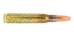 >>2494449Huh? I haven't read the details. But that's a fully-loaded stripper clip that's apparently for a Kar 98k he was using. It's like an additional magazine.