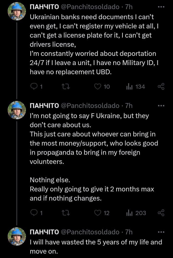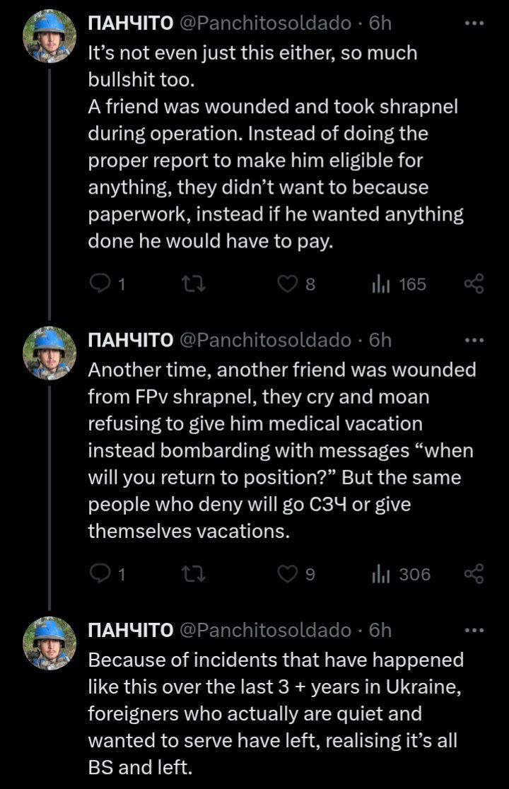 https://www.businessinsider.com/ukraine-french-brigade-anne-kyiv-ryumshin-2-million-bail-2025-1 >>2495359>big pay outs for UkraineSum it up and work it out as a percentage of GeeDeePee. PPP too if you feel like having a laugh. What Ukraine's allies have sacrificed to give aid to Ukraine is not in any way like what Russia has sacrificed and continues to sacrifice.